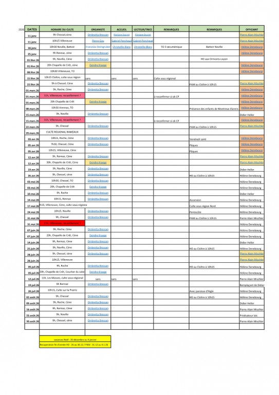 Tabelle des cultes - 01.01-31.08.2026
